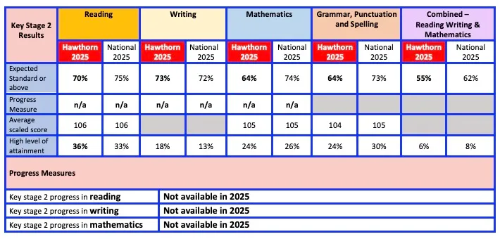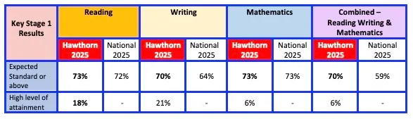 Key Stage 1 Teacher Assessment Results - Summer 2025 (Non Statutory)