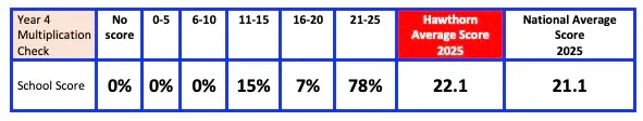 Key Stage 2 - Year 4 Multiplication Tables Check (MTC) Results - Summer 2025